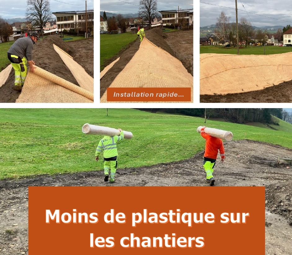 «Chez nous, les toiles de protection ont été utilisées sous nos bureaux-containers et le long d’un chemin pour stabiliser le talus. Jusqu’à présent, elles ont parfaitement rempli leurs missions à merveille et permettent même la pousse de la végétation. Déjà un succès sur le plan esthétique, ce produit est très avantageux par rapport aux films plastiques utilisés habituellement. Pour nous, le principal atout est de ne plus avoir à séparer les tapis du déblai».