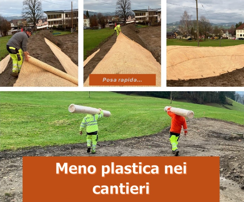 «Usiamo i teli geotessili sotto i container dell’ufficio e lungo un sentiero per delimitare il pendio. Finora, hanno adempiuto perfettamente al loro scopo e permettono persino alla vegetazione di crescere sul pendio. Si tratta di un grande vantaggio rispetto alle guaine di plastica comunemente usate, anche solo puramente da un punto di vista estetico. Il più grande vantaggio per noi, tuttavia, è che non dobbiamo più separare le stuoie dal materiale di scavo durante la demolizione.»